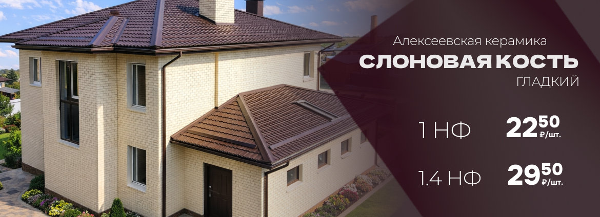 Алексеевский кирпич лицевой 1.4НФ слоновая кость гладкий